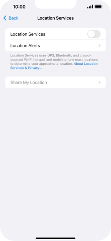 Press the indicator next to "Location Services" to turn the function on or off.