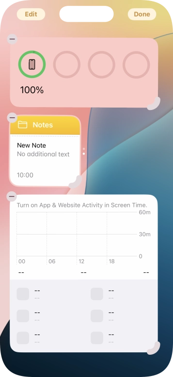 You can use widgets on your phone allowing you to get a quick overview of selected apps. You can choose between different widget sizes, organise widgets in stacks and place them on the home screen.
