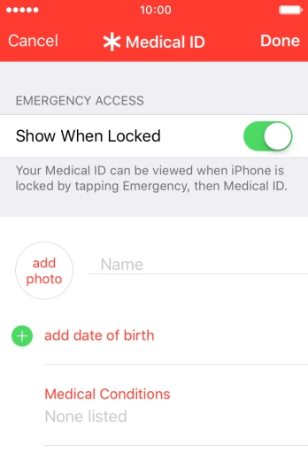 Using Health, you can save health information and see an overview of your health. You can also save emergency information for use in emergencies and share this information with other health and fitness apps.