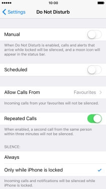 If you don't want to be disturbed by calls or notifications, you can set your phone to silent mode for a specified period of time. You can also choose that your phone should ring when you receive calls from certain contacts even though your phone is in silent mode.