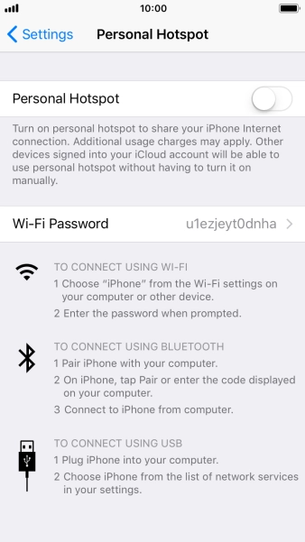 To use your phone as a personal hotspot, you need to key in the password you selected when you set up your phone as a personal hotspot on the other device.