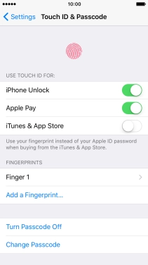 You can set your phone to use your fingerprint as phone lock code or to authorise iTunes and App Store purchases. To use Touch ID, you need to turn on the phone lock code.