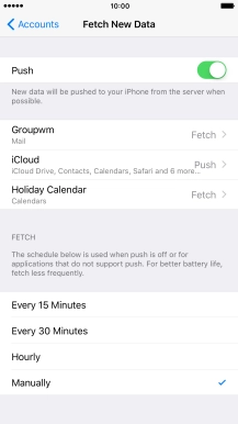 Press the required email account and follow the instructions on the screen to select settings for the specific account.