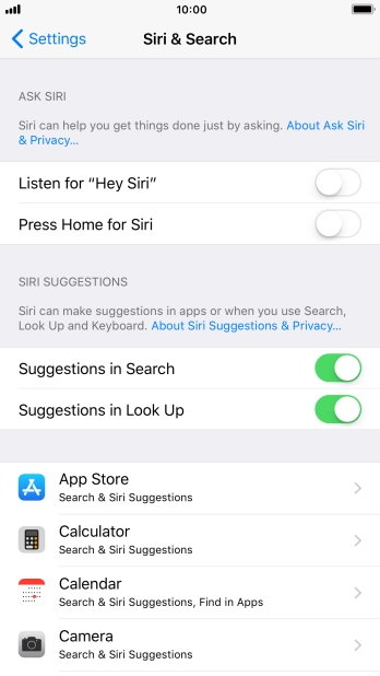 Select settings for Siri