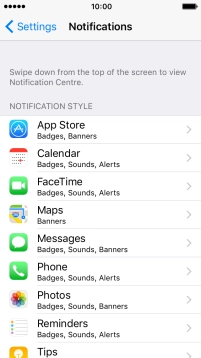 Press the indicator next to "Allow Notifications" to turn push notifications for the selected application on or off.