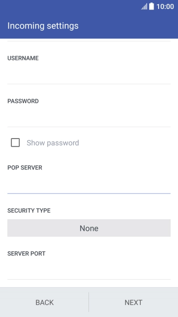 Press the field below "POP SERVER" and key in the name of your email provider's incoming server.