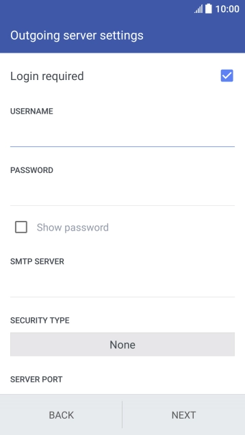 Press the field below "SMTP SERVER" and key in the name of your email provider's outgoing server.