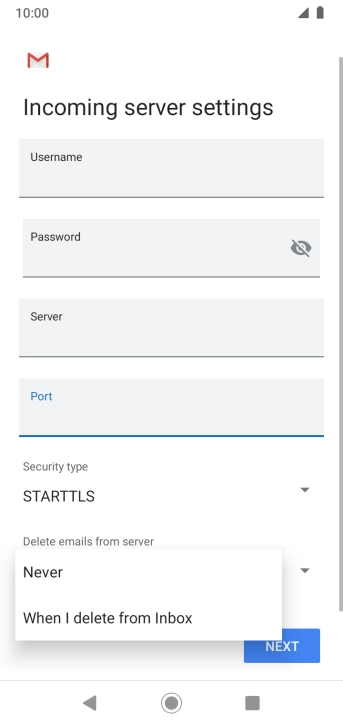 Press the field below "Server" and key in the name of your email provider's incoming server.