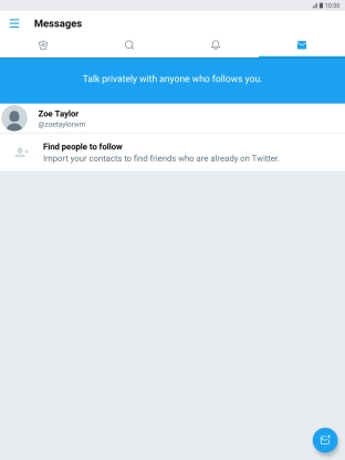 You can use Twitter on your tablet. To use Twitter, you need to set up your tablet for internet and install Twitter. Please note that the developer continuously updates the app which means that it may differ from these instructions.