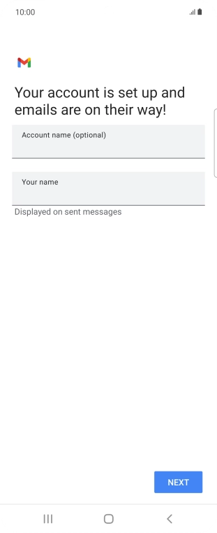 If this screen is displayed, your email account has been recognised and set up automatically. Follow the instructions on the screen to key in more information and finish setting up your phone.